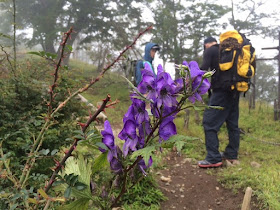 檜洞丸山頂付近ではヤマトリカブトの花が見られます。植生保護柵の中ではヤマトリカブトの花が多く見られています。シロヨメナの花もたくさん咲いています。