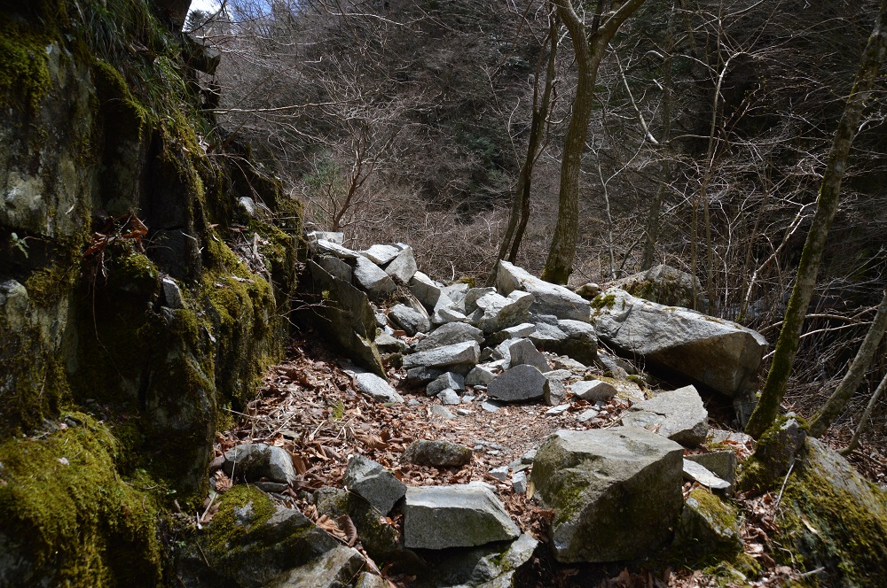 用木沢出合から1.1㎞地点の落石場所